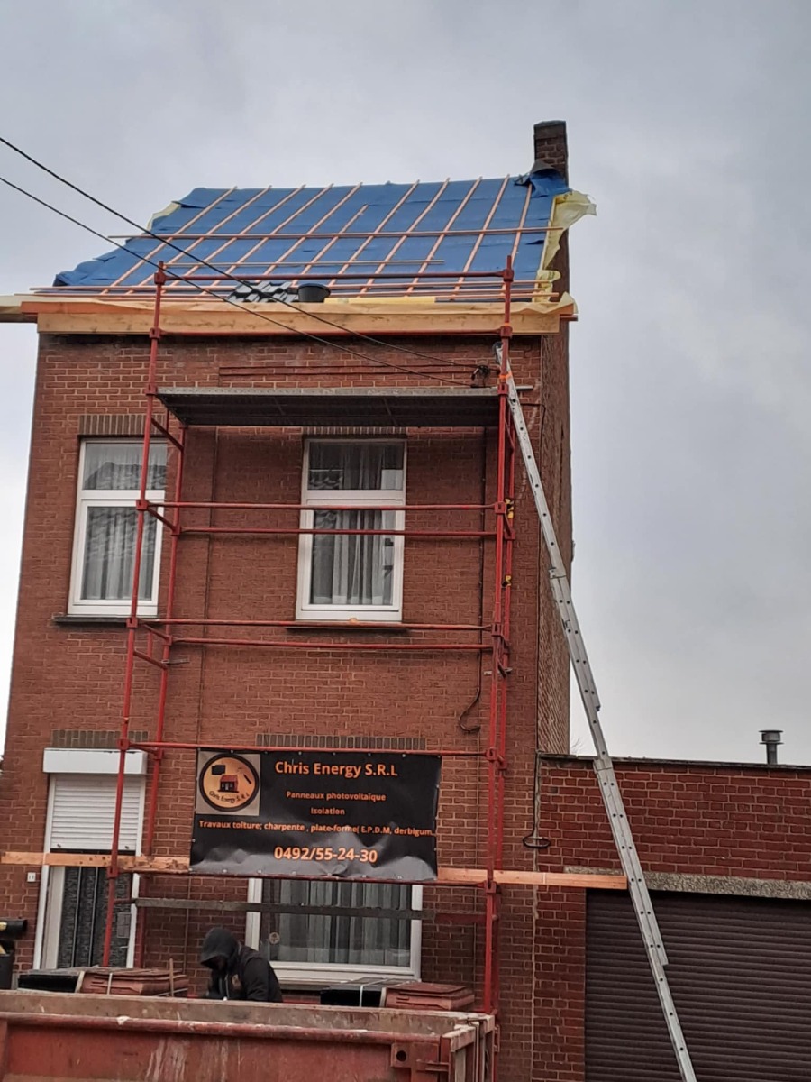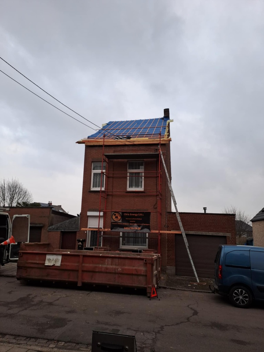 Depuis plus de 23 ans, CHRIS ENERGY réalise des projets de toiture variés à La Louvière, Montigny-le-Tilleul, Soignies. Nos réalisations incluent des rénovations de toiture, installations de panneaux photovoltaïques, travaux de zinguerie et interventions en charpente. Avec notre expérience en couverture, nous transformons chaque projet en une réussite, alliant durabilité et esthétisme.